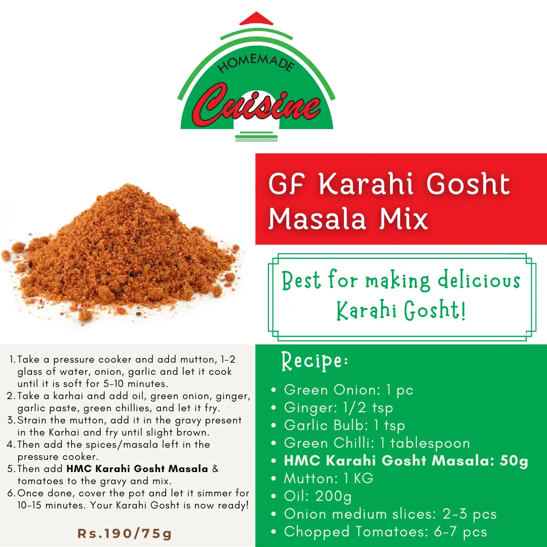 Use our Gluten Free Karahi Gosht Masala to make juicy and delicious Chicken/Mutton Karahi at home!